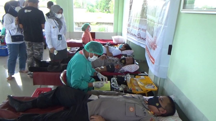 Polsek Bajeng Polres Gowa menggelar kegiatan sosial donor darah dan pemeriksaan kesehatan yang digelar di Mapolsek Bajeng, Rabu 10 November 2021.