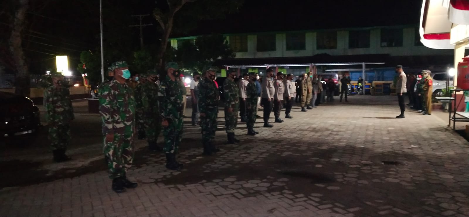 Personil gabungan yang terdiri dari TNI-Polri, Satpol PP dan pemerintah kecamatan Parigi melaksanakan apel bersama di halaman kantor camat Parigi sebelum melaksanakan kegiatan patroli PPKM Mikro,Selasa (13/7).