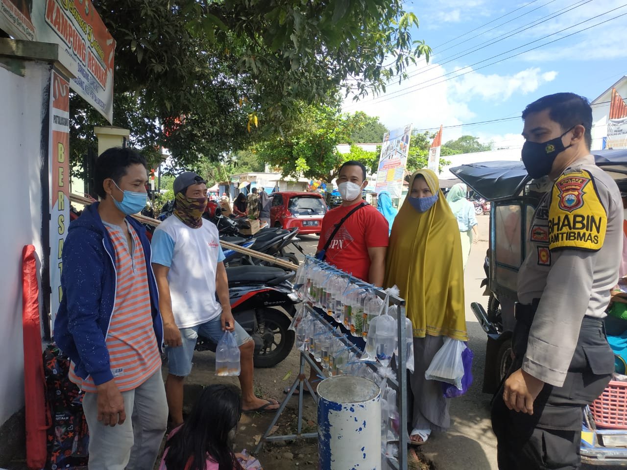 Sinergitas Kapolsek Barombong dan Danramil Lakukan Operasi Prokes di Pasar Tradisional MoncoBalang