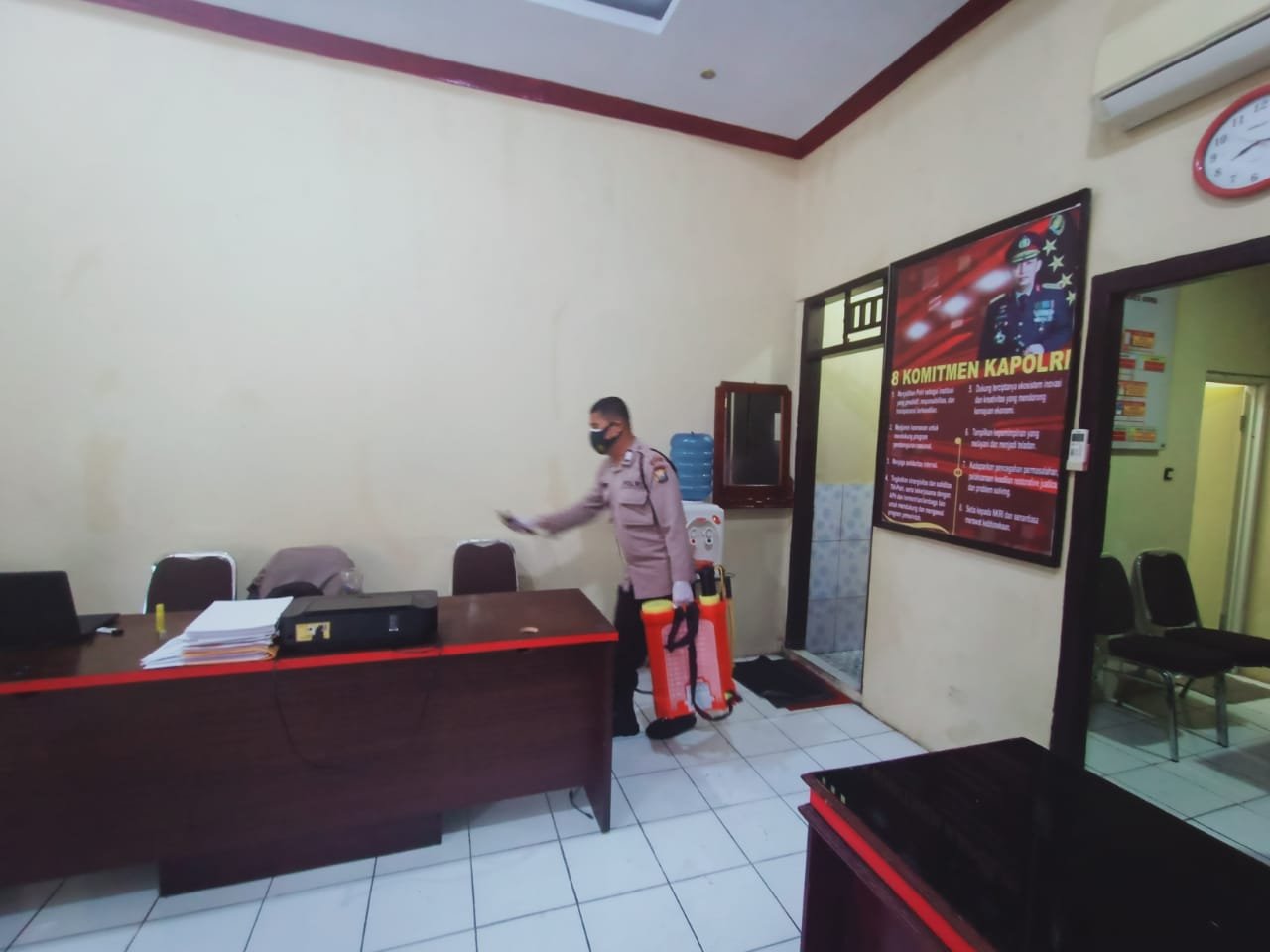 Gowa- Untuk mencegah penyebaran Covid- 19 di wilayah kabupaten Gowa khususnya pada kantor tiap institusi, pihak kepolisian Resort Gowa melalui klinik Wira Bhayangkara melakukan penyemprotan cairan disinfektan.