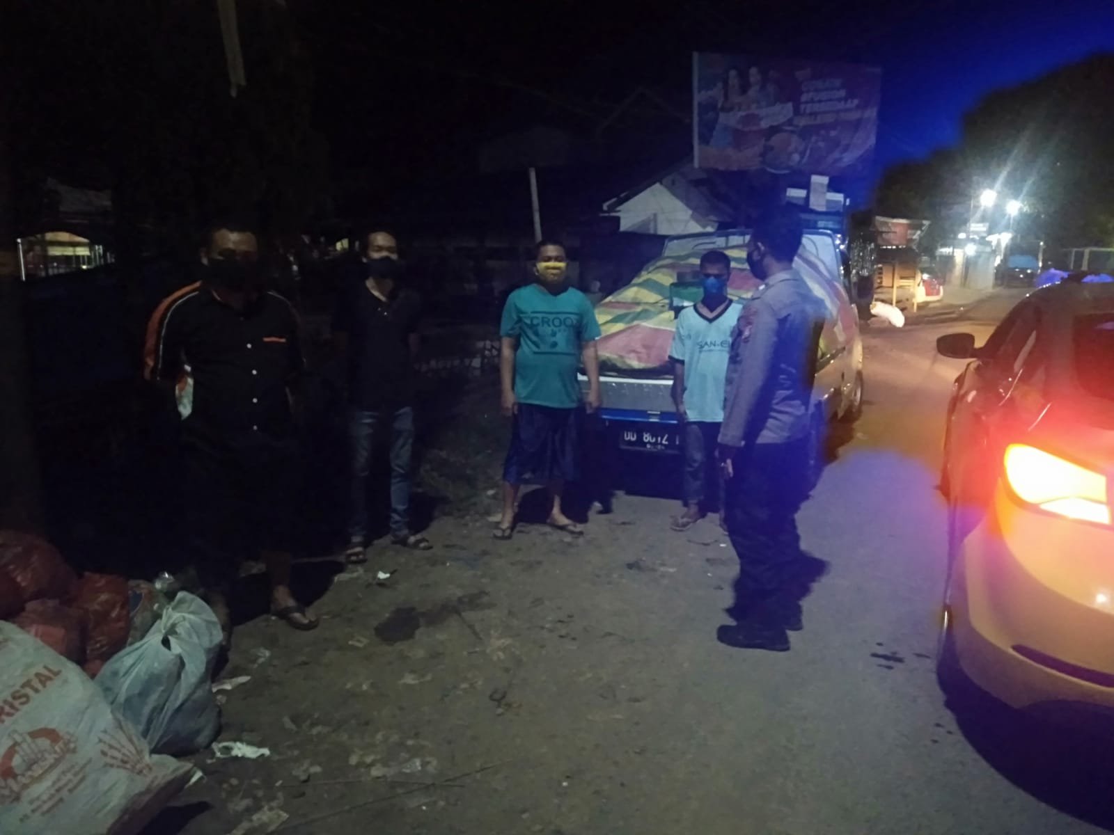 Selasa 13/7/21 dini hari, personil Polsek Bontonompo di pimpin KSPK 1 Aiptu Suwardi melaksanakan giat patroli blue light / dialogis di seputaran jalan poros Bontonompo.
