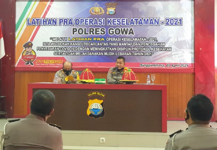 Kepolisian Daerah Sulawesi Selatan melaksanakan Gelar Pasukan Ops Kepolisian Mandiri Kewilayahan Keselamatan 2021, di Lapangan upacara Mapolda Sulsel,