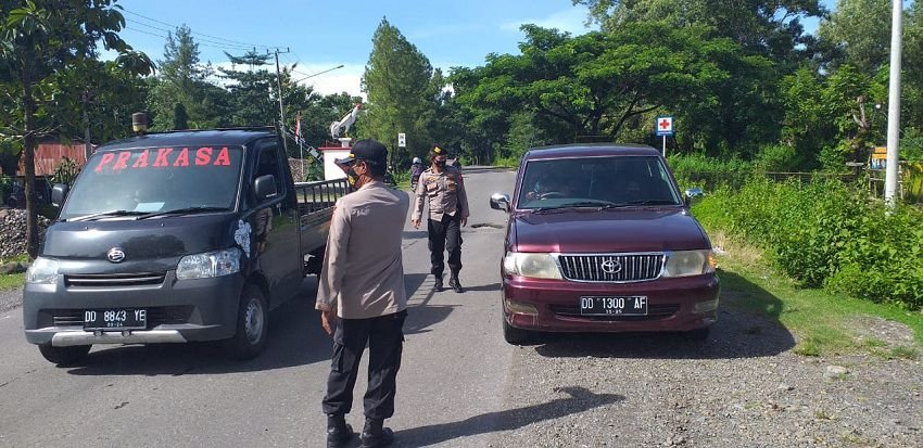 Untuk memutus mata ranti Covid-19, jajaran Personil Polsek Parangloe Polres Gowa melaksanakan Operasi Yustisi penegakan Protokol kesehatan dijalan poros Malino Km 40 kelurahan Lanna Kecamatan Parangloe Kabupaten Gowa, sabtu (27/03/21).