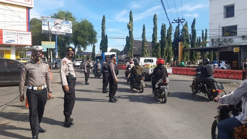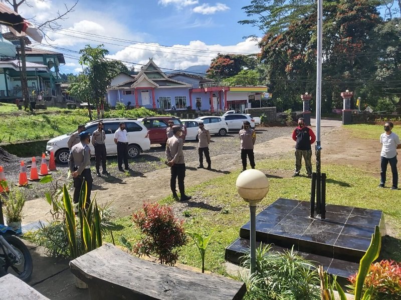 kapolsek Tinggimoncong Polres Gowa IPTU Hasan Fadhlyh SH pimpin apel pagi di halaman Polsek Tinggimoncong Jl.Endang No 237 Kelurahan Malino Kecamatan Tinggimoncong,Sabtu (20/3/2020).