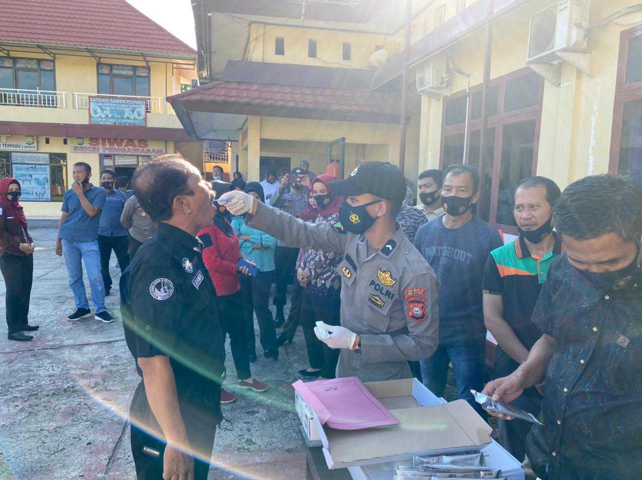 Usai apel pagi, Kamis (25/2/2021), Kapolres Luwu Utara, AKBP Irwan Sunuddin menindaklanjuti Surat Telegram Kapolri Nomor: ST/331/II/HUK.7.1/2021 tanggal 19 Februari. 102 personel yang bertugas di Mako Polres Luwu Utara (Lutra) Sulawesi Selatan (Sulsel) menjalani tes air liur dengan menggunakan alat drugwife 6S.