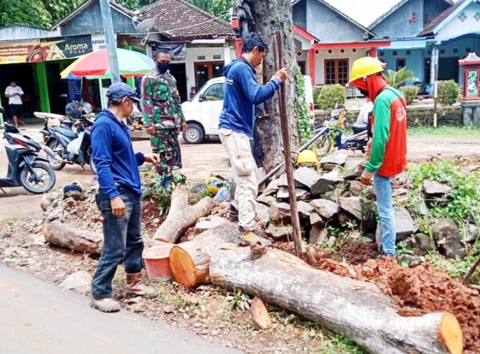 Dalam rangka mengantisipasi terjadinya pohon tumbang, Babinsa Guli, Koramil 13 Nogosari, Kodim 0724 Boyolali, Serda Nurman Arif bersama warga Dukuh Miri, Desa Keyongan, Kecamatan Nogosari, Kabupaten Boyolali melakukan pemangkasan dan pemotongan pohon yang rawan tumbang, Sabtu (30/01/2021).