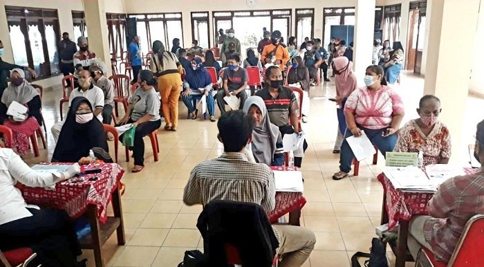 Babinsa Kelurahan Joyotakan, Koramil 03 Serengan, Kodim 0735 Surakarta, Sertu Harnawan melakukan monitoring dan cek pelaksanaan pembagian Bantuan Sosial Tunai (BST) tahap X yang berlangsung di Pendopo Kelurahan Jl. Rebab RT.05/II, Kelurahan Joyotakan, Kecamatan Serengan, dan sebagai penanggungjawab kegiatan adalah Purbowinoto, SE (Lurah Joyotakan), Sabtu (30/01/2021).