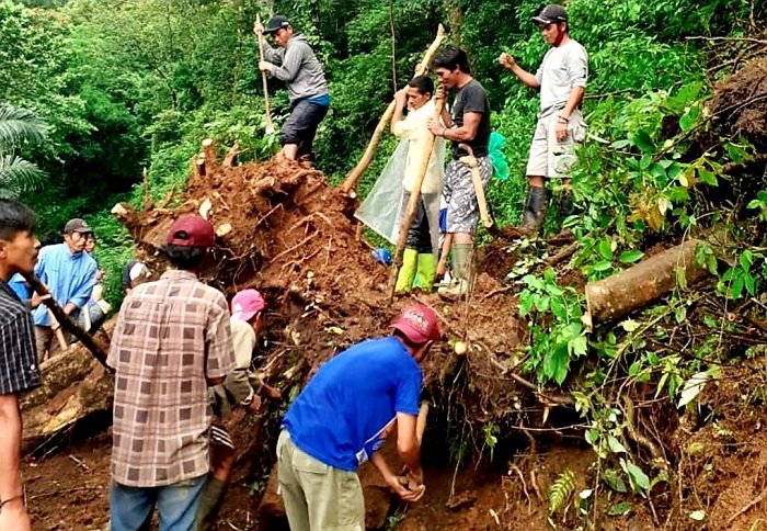 Hujan yang beberapa hari ini terjadi di wilayah Tinggimoncong mengakibatkan bencana alam tanah longsor dan menutupi jalan poros Kelurahan Gantarang, Kecamatan Tinggimoncong, Kabupaten Gowa.