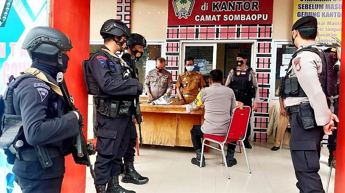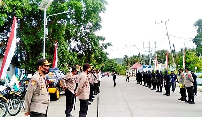Kapolres Kepulauan Selayar AKBP Temmangnganro Machmud, SIK, MH memimpin apel gabungan persiapan pengamanan rapat pleno hasil perolehan suara pilbup/wabup 2020 yang digelar KPU Selayar.