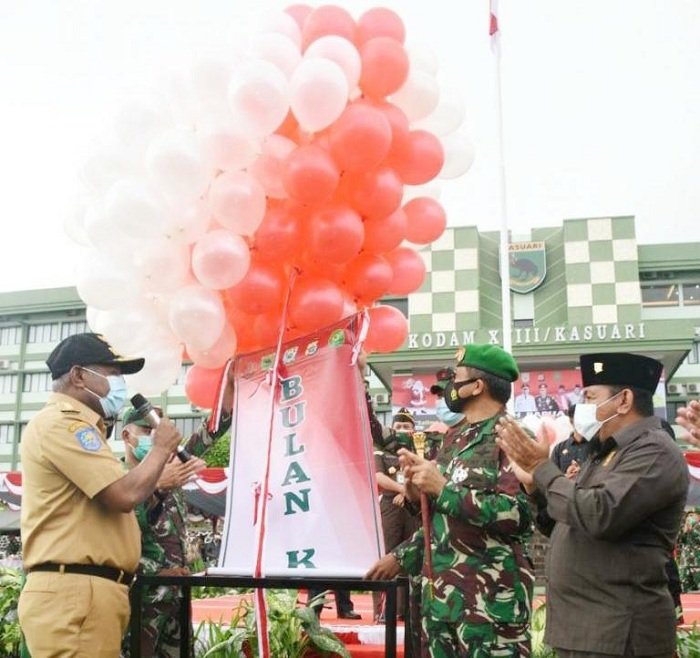 Persekutuan Oikumene Korem 142/Tatag dan Gereja Kasih Kristus Indonesia Jemaat Mamuju melaksanakan Ibadah dan Perayaan Natal Tahun 2020 dengan tema “Melalui Natal 2020 kita perkokoh Iman, kepedulian dan solidaritas Prajurit dan PNS TNI-AD menuju Indonesia Maju." Kegiatan ini dilaksanakan di Aula Andi Depu Korem 142/Tatag, Sabtu (12/12/2020).