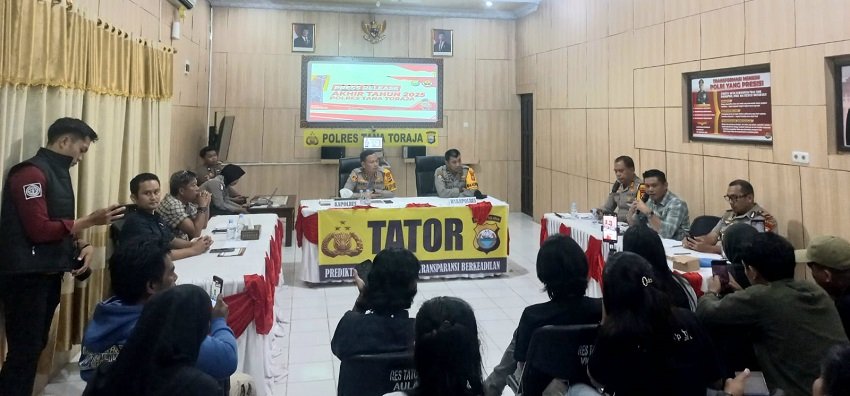 Press release akhir tahun 2025 dipimpin oleh Kapolres Tana Toraja AKBP Budi Hermawan, didampingi Waka Polres dengan memaparkan situasi Kamtibmas selama tahun 2025 dan perbandingan tahun 2024.