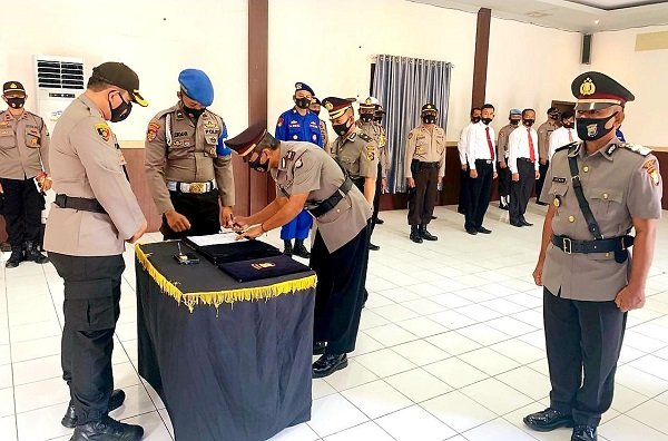 Kapolres Sinjai AKBP Iwan Irmawan memimpin upacara serah terima jabatan (sertijab) Kabag Ops dan Kapolsek Sinjai Tengah, bertempat di ruang Aula Parama Satwika Mapolres Sinjai, Jumat (13/11/2020).