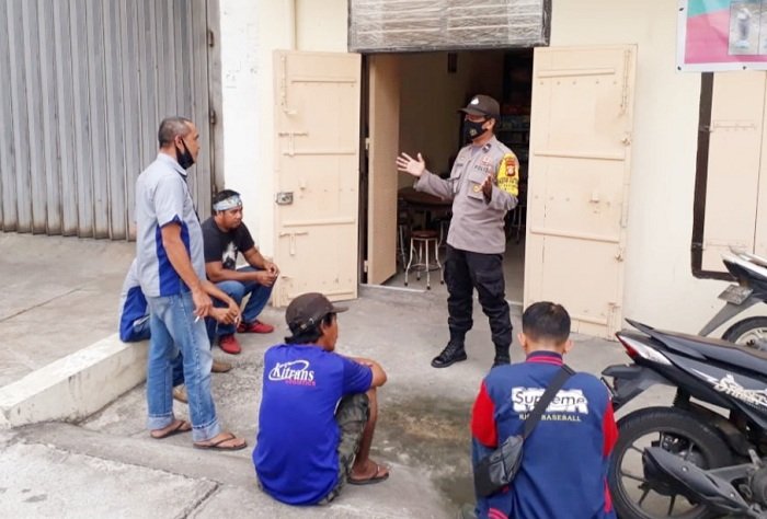Bhabinkamtibmas Pattunuang melaksanakan kegiatan sambang dan memberikan imbauan kepada pedagang kaki lima (PKL) dan tukang bentor disekitar Pasar Sentral atau Makassar Mall, Kecamatan Wajo, Kota Makassar, Senin (02/11/2020).