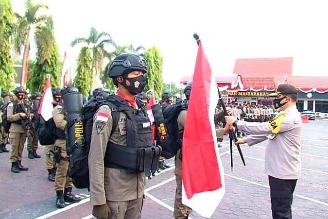 Sebanyak 100 personel Sat Brimob Polda Riau penugasan Bawah Kendali Operasi (BKO) Polda Papua diberangkatkan oleh Kapolda Riau Irjen Pol Agung Setia Imam Effendy, SH, SIK, MSI di Mapolda Riau, Selasa (11/08/2020) pagi.