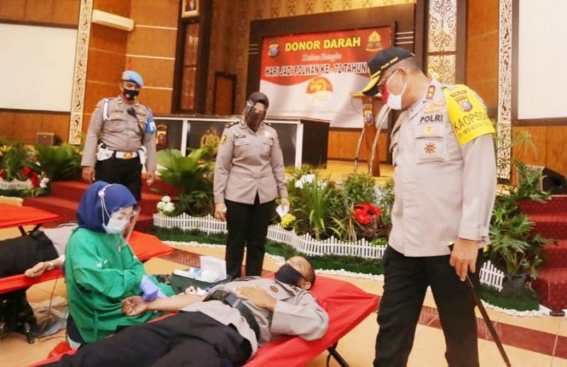 Kepolisian Daerah (Polda) Sumatera Utara (Sumut) melaksanakan bakti sosial dengan menggelar kegiatan donor darah dalam rangka menyambut Hari Ulang Tahun (HUT) ke-72 Polwan, Selasa (11/08/2020).