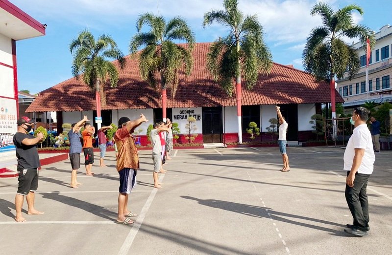 Jaga Kebugaran Ditengah Wabah Covid-19, Tahanan Polres Gowa Rutin Ikuti Olahraga Bersama