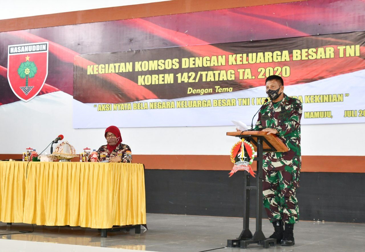 Staf Teritorial Korem 142/Tatag melaksanakan komunikasi sosial TNI dengan Keluarga Besar TNI (KBT) bertempat di Aula Andi Depu Korem 142/Tatag Jl. Abd. Malik Pattana Endeng, Mamuju, Sulbar, Kamis (9/7/2020).