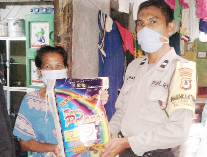 Dalam rangka semarak Hari Bhayangkara ke-74, Polsek Bontomarannu Polres Gowa membagikan paket sembako kepada warga prasejahtera atau kalangan fakir miskin dan dhuafa, Sabtu (04/07/2020).