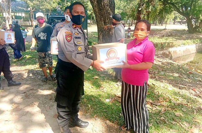 Semarak Hari Bhayangkara ke-74, Kapolsek Bontomarannu Bagikan Sembako ke Warga Prasejahtera