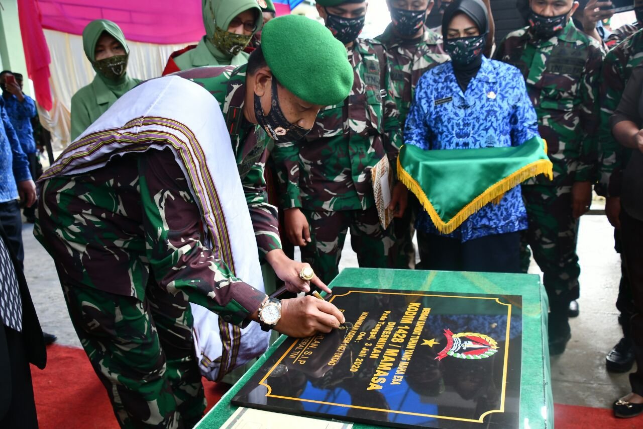 Ibu Sri Asiyah (57) tidak kuasa menahan tangis ketika Ketua Umum Persit Kartika Chandra Kirana Ny. Hetty Andika Perkasa menyampaikan akan membantu membuatkan rumah layak huni dengan dilengkapi fasilitas MCK.