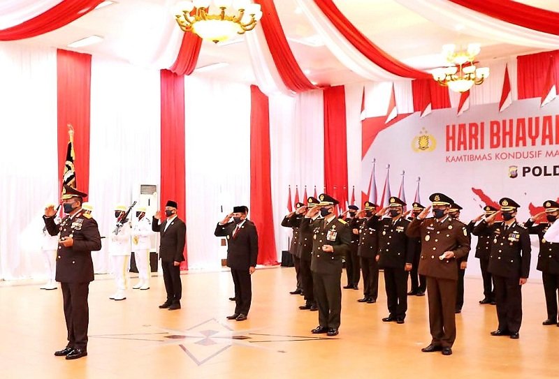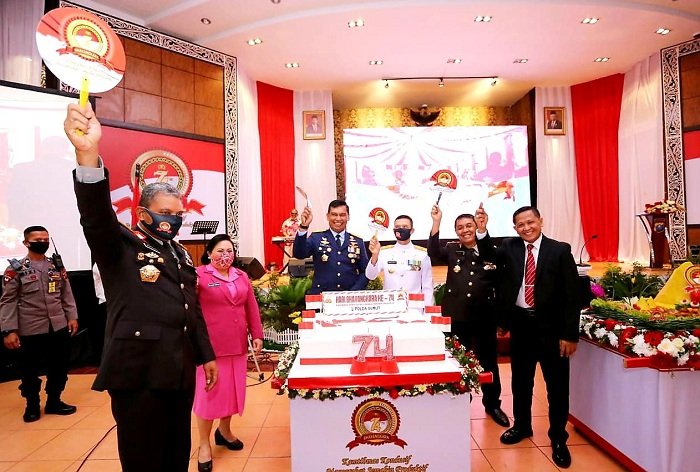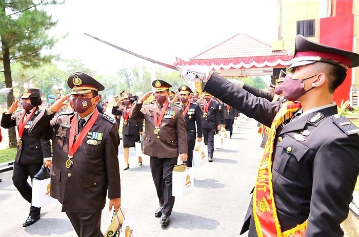 Kapolda Sumut Irjen Pol. Drs. Martuani Sormin M. Si memimpin upacara pelepasan para Purnawirawan Polri Polda Sumut di depan Lobby Adhi Pradana Polda Sumut, Rabu (01/07/2020) siang pukul 12.00 WIB.