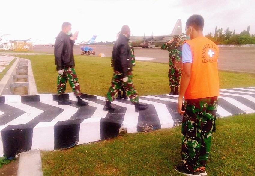 Komandan Pusat Teritorial Angkatan Darat (AD), Letman Jenderal TNI Joppye Onesimus Wayangkau bersama rombongannya tiba dan transit di Base Ops Lanud Sultan Hasanuddin di Kabupaten Maros, Kamis (07/05/2020) siang sekitar pukul 13.11 Wita.