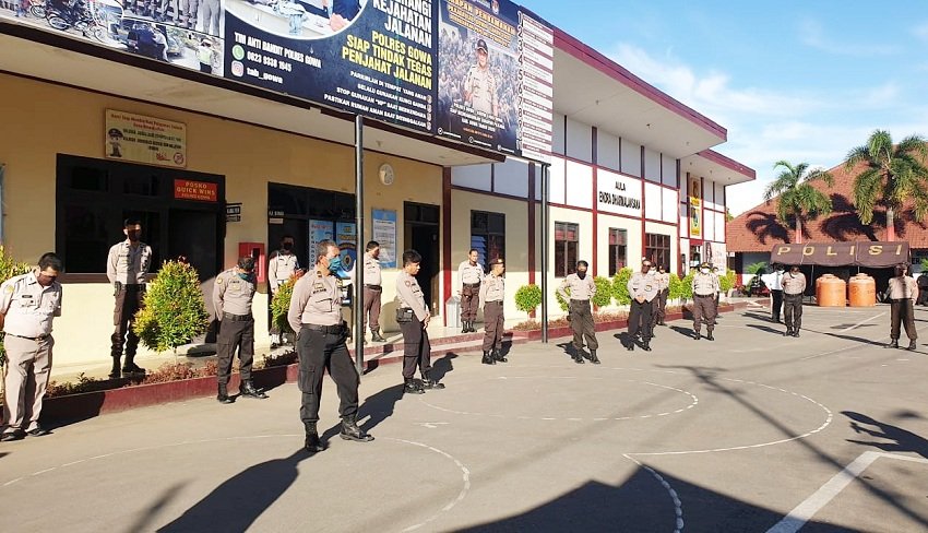 Bhabinkamtibmas Polsek Somba Opu, Aipda M. Jufri, SH bersama Lurah Bontoramba, Abd. Latif Has, SE dan Babinsa Koramil Somba Opu, Serda Suardi menyebarkan informasi terkait bencana darurat virus Corona atau Covid-19, Minggu (29/03/2020) sore pukul 16.00 Wita.