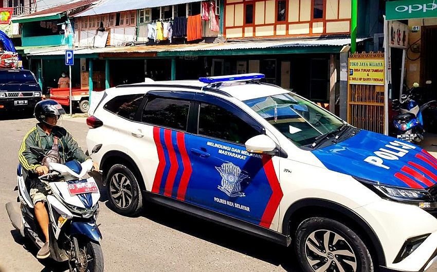 Gabungan Sat Sabhara, Sat Lantas dan personil Polsek Benteng yang dipimpin langsung oleh Kasat Sabhara AKP Sritoto melaksanakan patroli untuk mengimbau masyarakat agar tidak keluar rumah.