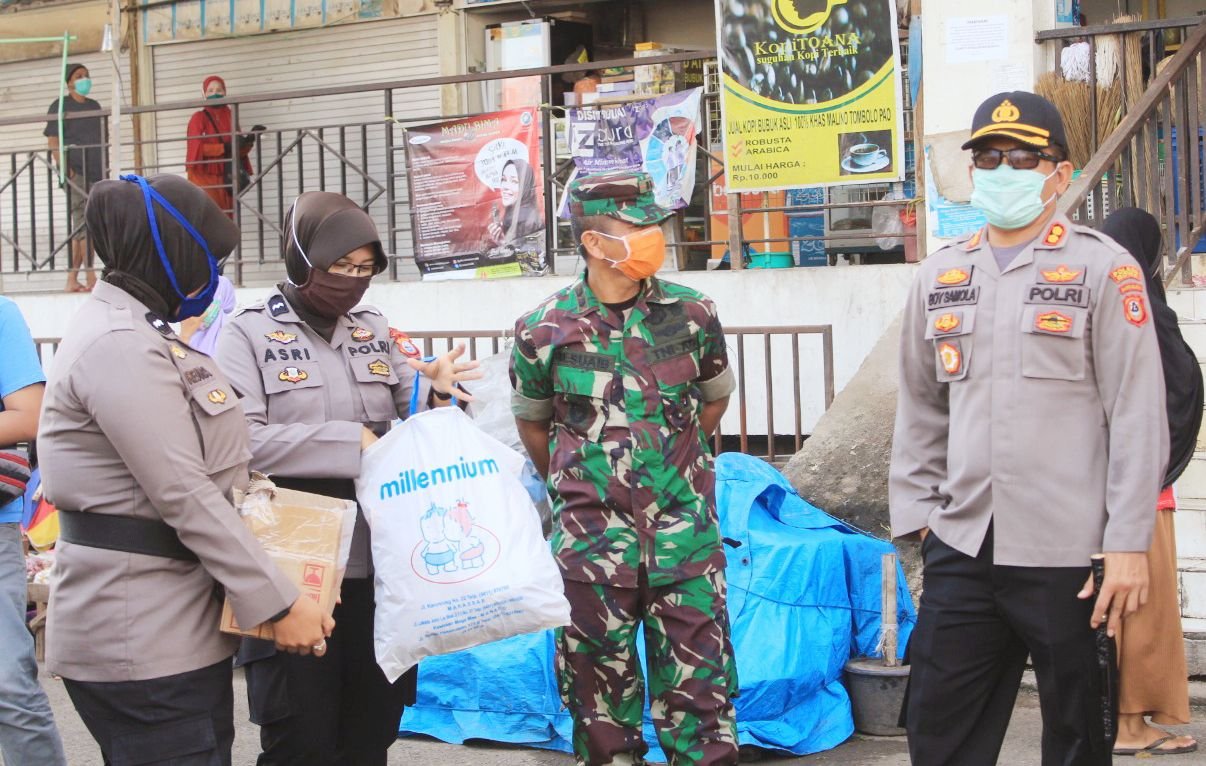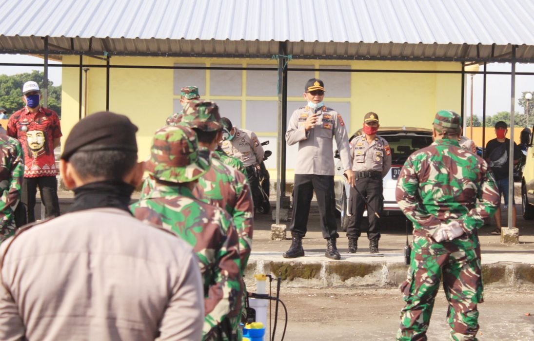 Kapolres Gowa AKBP Boy Samola, Dandim 1409 Gowa dan kepala Kecamatan Somba Opu melaksanakan apel dalam rangka pencegahan virus Corona di Pasar Minasa Maupa, Kamis (26/03/2020).