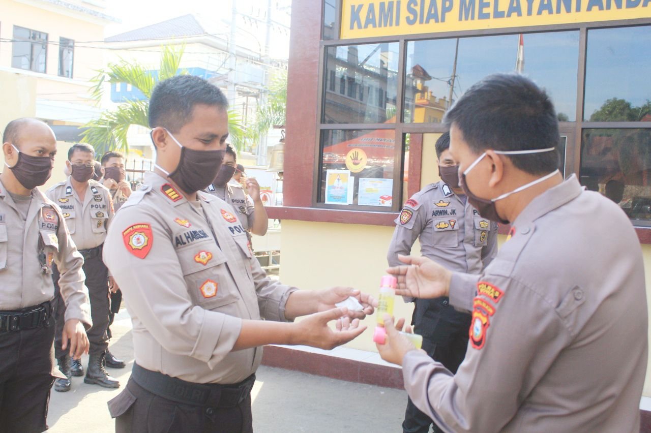 Usai menerima arahan dari Waka Polres Gowa pada Kamis (26/03/2020), seluruh anggota Polres Gowa dibagikan satu persatu masker guna mengantisipasi penularan virus Corona (Covid-19).