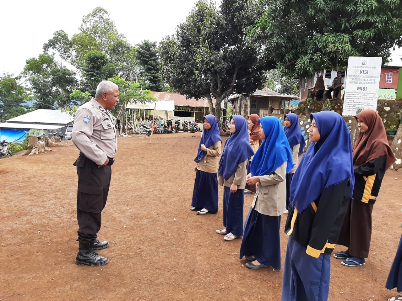 Tanamkan Disiplin, Bhabinkamtibmas Polres Gowa Latih Baris Berbaris Kepada Pelajar MAN Aliah