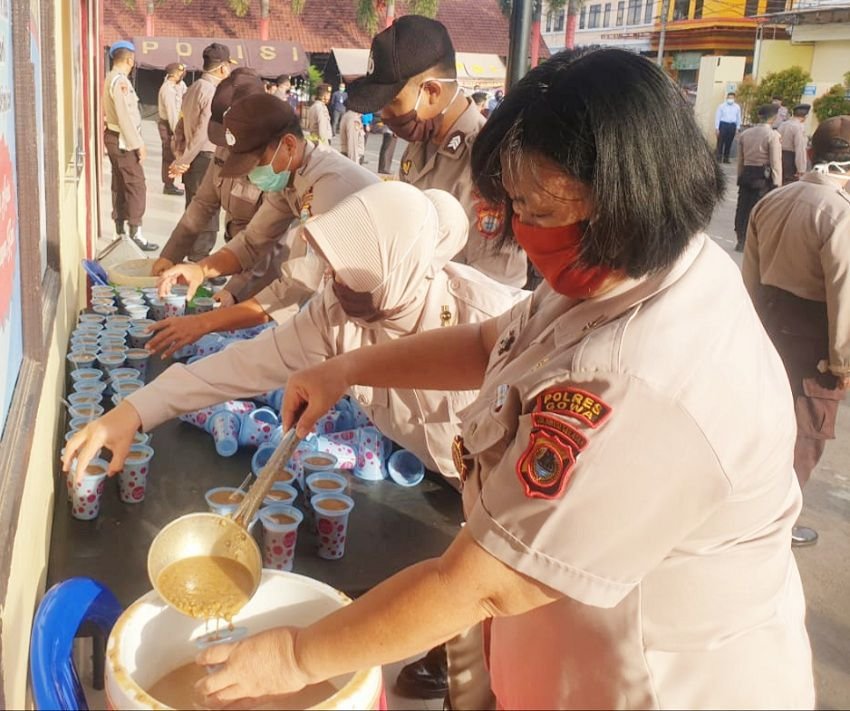 Dalam rangka mengajak masyarakat mematuhi kebijakan pemerintah, personil Polres Gowa membagi-bagikan brosur, masker dan memberikan himbauan kepada warga agar mencegah merebaknya virus Corona atau Covid-19.