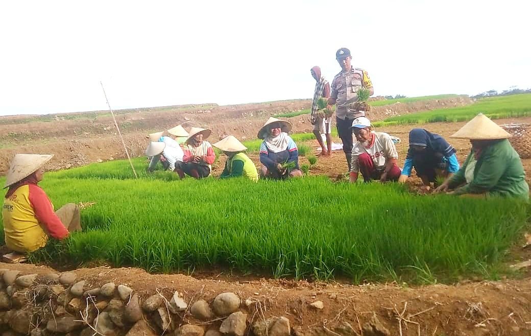 Bhabinkamtibmas Polsek Tompobulu Polres Gowa yang juga sebagai Pembina Desa Datara Aipda Saenal melakukan kegiatan sambang desa dengan mendatangi dan menyambangi petani yang sedang mencabut bibit benih padi di area persawahan di Desa Datara, Sabtu (25/01/2020) pagi.