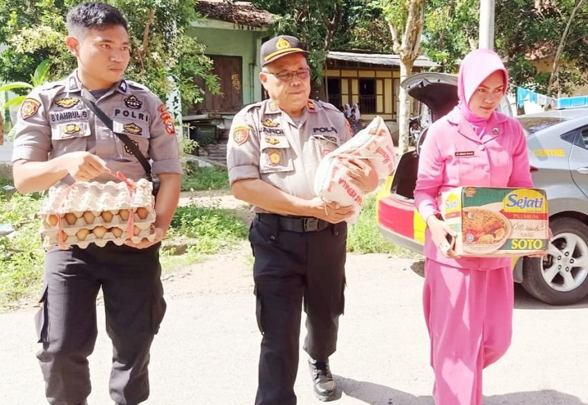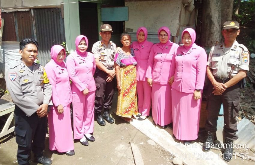 Kapolsek Barombong AKP Muh. Hasyim didampingi Ketua Ranting Bhayangkari Ny. Nia Hasyim dan Bhayangkari Barombong sambangi keluarga yang tidak mampu di Dusun Tamallalang Darat, Desa Tamanyeleng, Barombong, Selasa (21/01/2020) pagi.