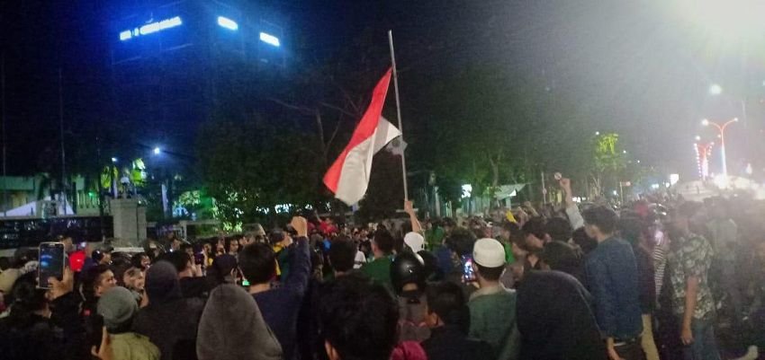 Ratusan mahasiswa dari Universitas Atmajaya, memilih bertahan di depan gedung DPRD Provinsi Sulsel, Jl. Urip Sumoharjo, Senin malam (30/09/2019) kemarin. Mereka menyampaikan aspiranya yang menolak RUU KUHP, yang dinilai tidak pro terhadap rakyat.