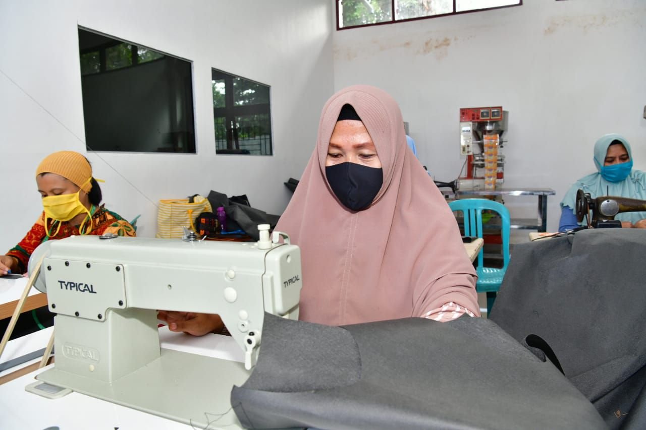 Pemerintah Kabupaten Bantaeng memanfaatkan Sumber Daya Manusia (SDM) milik Balai Latihan Kerja (BLK) untuk memproduksi secara mandiri masker dan Alat Pelindung Diri (APD) lengkap, seperti penutup wajah baju dan celana standar kesehatan.