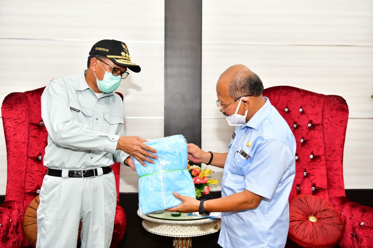 Gubernur Sulawesi Selatan (Sulsel), Prof HM Nurdin Abdullah, menyerahkan bantuan Alat Pelindung Diri (APD) ke Bupati Jeneponto, Iksan Iskandar, di Rujab Bupati Jeneponto, Kamis (23/4/2020).