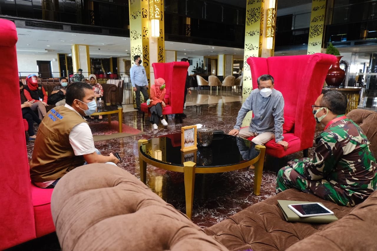 Nurdin berinteraksi langsung dengan para relawan pendamping, peserta/pasien serta para penyintas Covid-19.