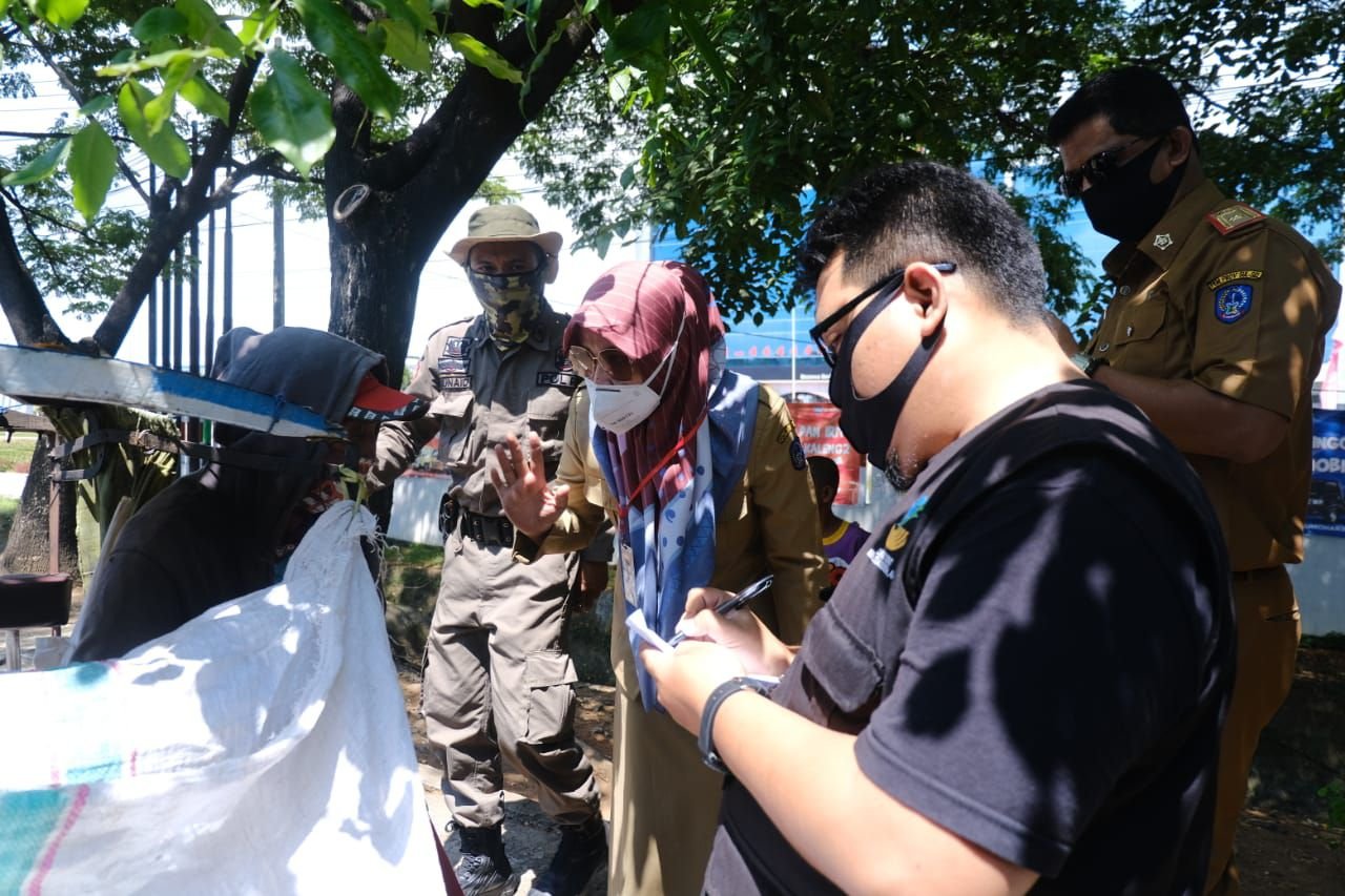 Tim gabungan yang terdiri dari Satpol PP Sulsel, Dinas Perhubungan Sulsel, Dinas Sosial Sulsel, BKD Sulsel dan lembaga terkait, Selasa (5/5/2020), turun melakukan penyisiran di Kota Makassar untuk mendata anak jalanan dan tukang becak yang masih berada di jalan-jalan selama masa perberlakuan PSBB di Kota Makassar.