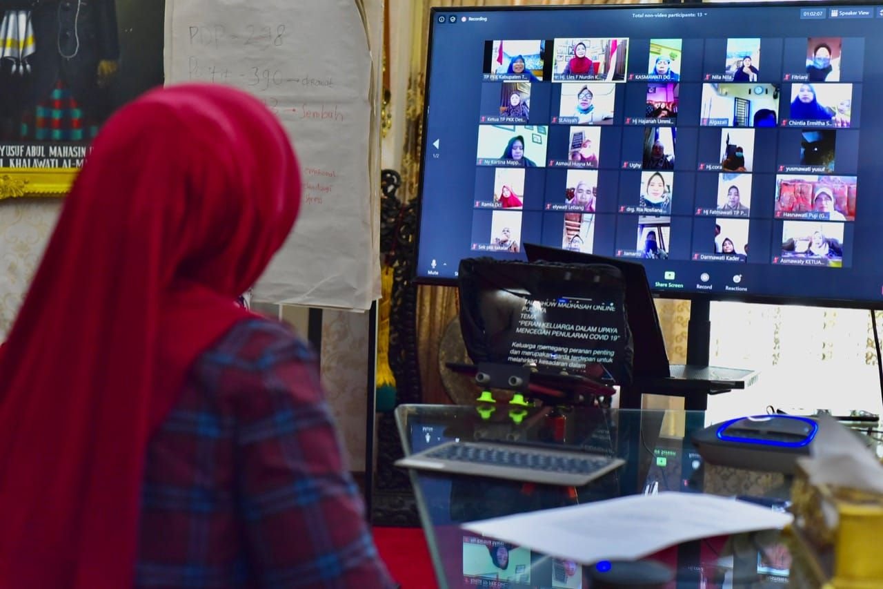 Ketua Tim Penggerak dan Kesejahteraan Keluarga (PKK) Sulsel, Lies F Nurdin, mengikuti temu wicara secara virtual dengan Pusat Pembelajaran Ibu-ibu Takalar (Puspita) Milenia dalam Talkshow Madrasah Online Puspita, dengan mengangkat tema Peran Keluarga Dalam Upaya Mencegah Penularan Covid-19.