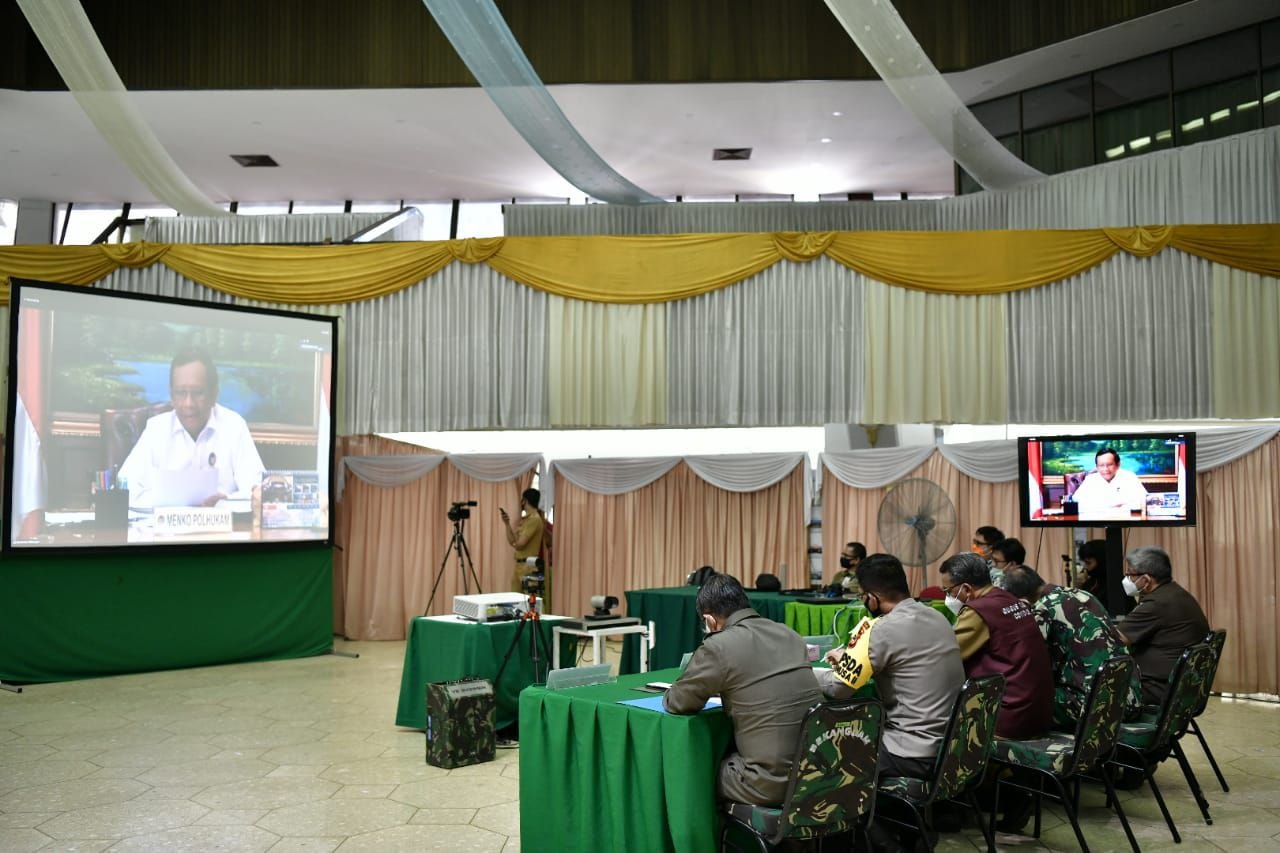 Gubernur Sulsel, Pangdam Hasanuddin, Kapolda, Kajati dan Kabinda Sulsel, melakukan rapat via video conference (Vicon) dengan Menteri Koordinator Bidang Politik, Hukum, dan Keamanan (Menko Polhukam). Dalam vicon ini membahas bagaimana pengamanan dan penegakan protokol kesehatan jelang Hari Raya Idul Fitri 1441 H.
