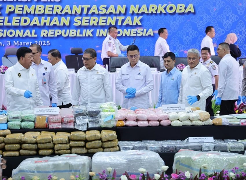 BNN mengungkapkan bahwa dalam periode Februari 2025, mereka telah menyita berbagai jenis narkotika yaitu 201.290,22 gram sabu, 894.330 gram ganja dan 303.188 butir ekstasi setara dengan 115.211,65 gram.