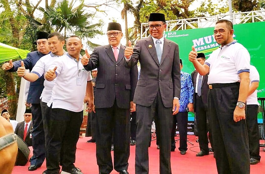 Gubernur Sulsel didampingi Ketua Dewan Perwakilan Rakyat (DPRD) Sulsel H Moh Roem, Wakil Bupati Kepulauan Selayar Dr H Zainuddin, SH, MH, Deputi Direktur BPJS Ketenagakerjaan Wilayah Makassar Toto Suharto, Kepala BPJS Ketenagakerjaan Selayar dan Kepala Dinas Perhubungan Kepulauan Selayar Andi Baso, SH, MH.