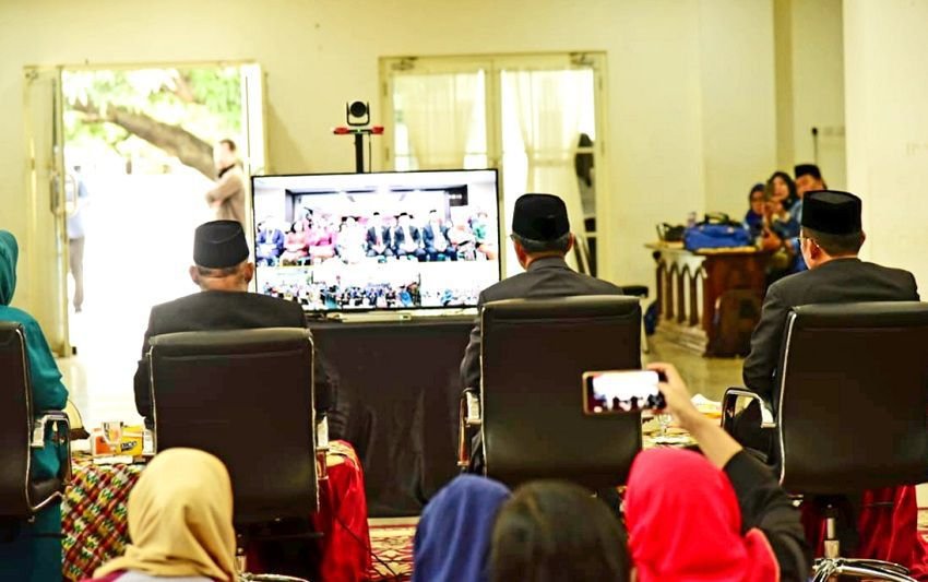 Video Conference yang dilakukan Gubernur Nurdin bersama Menteri Terawan dalam rangka peringatan Hari Kesehatan Nasional (HKN) ke-55. Melalui saluran ini, Gubernur Nurdin menyampaikan selamat atas jabatan yang diemban dr Terawan sebagai Menteri Kesehatan.