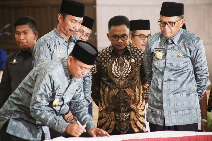 Acara penandatanganan MoU dukungan berubah bentuk Institut Agama Islam As'adiyah Sengkang menjadi Islamic University of As'adiyah Sengkang dengan Pemerintah Provinsi Sulawesi Selatan dan beberapa Kabupaten, Pimpinan PTN, PKIN/PTKIS di Ruang Pola Kantor Bupati Wajo, Rabu 22 Januari 2020.