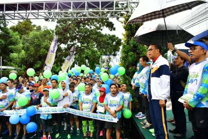 Gubernur Sulawesi Selatan, Prof. HM Nurdin Abdullah melepas ratusan runners atau pelari peserta Aksi Bank Sulselbar di Jalan Ratulangi, Minggu, (9/2/2020).