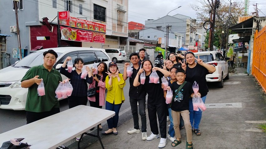 Sebanyak kurang lebih 300 kemasan takjil berupa es buah dibagikan oleh pemuda-pemudi dan remaja jemaat gereja tersebut kepada para pengendara mobil dan motor serta pejalan kaki yang lalu lalang di depan Gereja Isa Almasih Makassar Jl. Gunung Salahutu No.13 Makassar, Sabtu (15/3/2025) sore.
