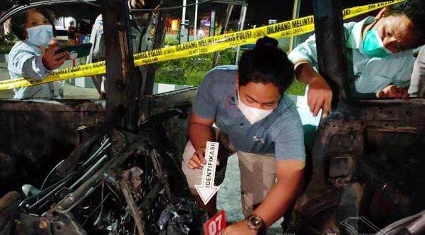 Lalu sekira pukul 17.30 Wita petugas pemadam kebakaran tiba di TKP memadamkan api yang membakar mobil tersebut.