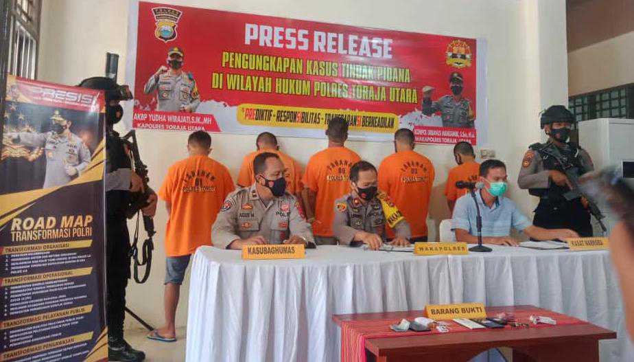 Satuan Reserse Narkoba Polres Toraja Utara, Sulawesi Selatan, kembali berhasil meringkus lima pemuda terduga pelaku tindak pidana penyalahgunaan dan peredaran narkotika golongan I jenis sabu.