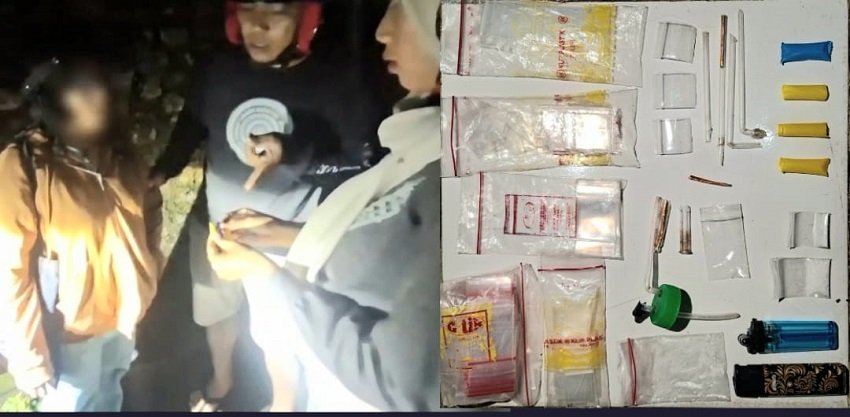 Tidak cukup di situ. Ketika petugas memeriksa tas yang dibawa VA, kembali ditemukan 2 sachet plastik klip bening berukuran sedang dan kecil berisikan butiran kristal bening yang diduga narkotika jenis Sabu beserta alat bong.